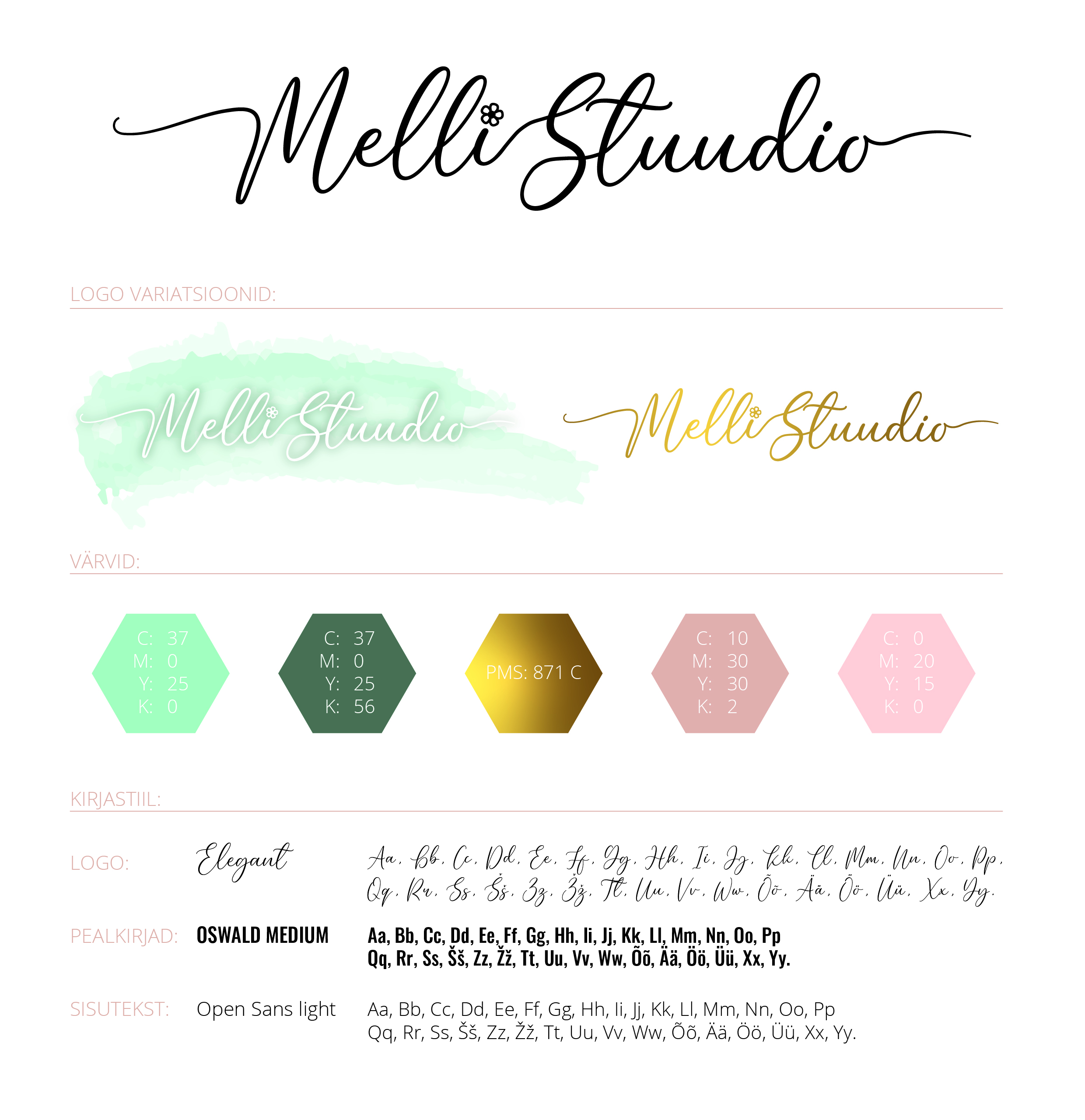 Melli Stuudio on Tartus asuv juuksurisalong, mille stiili iseloomustab õrn ja naiselik esteetika. Minu ülesandeks oli luua salongile logo ning stiiliraamat, mis aitaks hoida ühtset ja läbimõeldud visuaalset joont. Lisaks kujundasin neile kodulehe disaini ja visiitkaardi, mis toetavad brändi terviklikku ja professionaalset kuvandit.